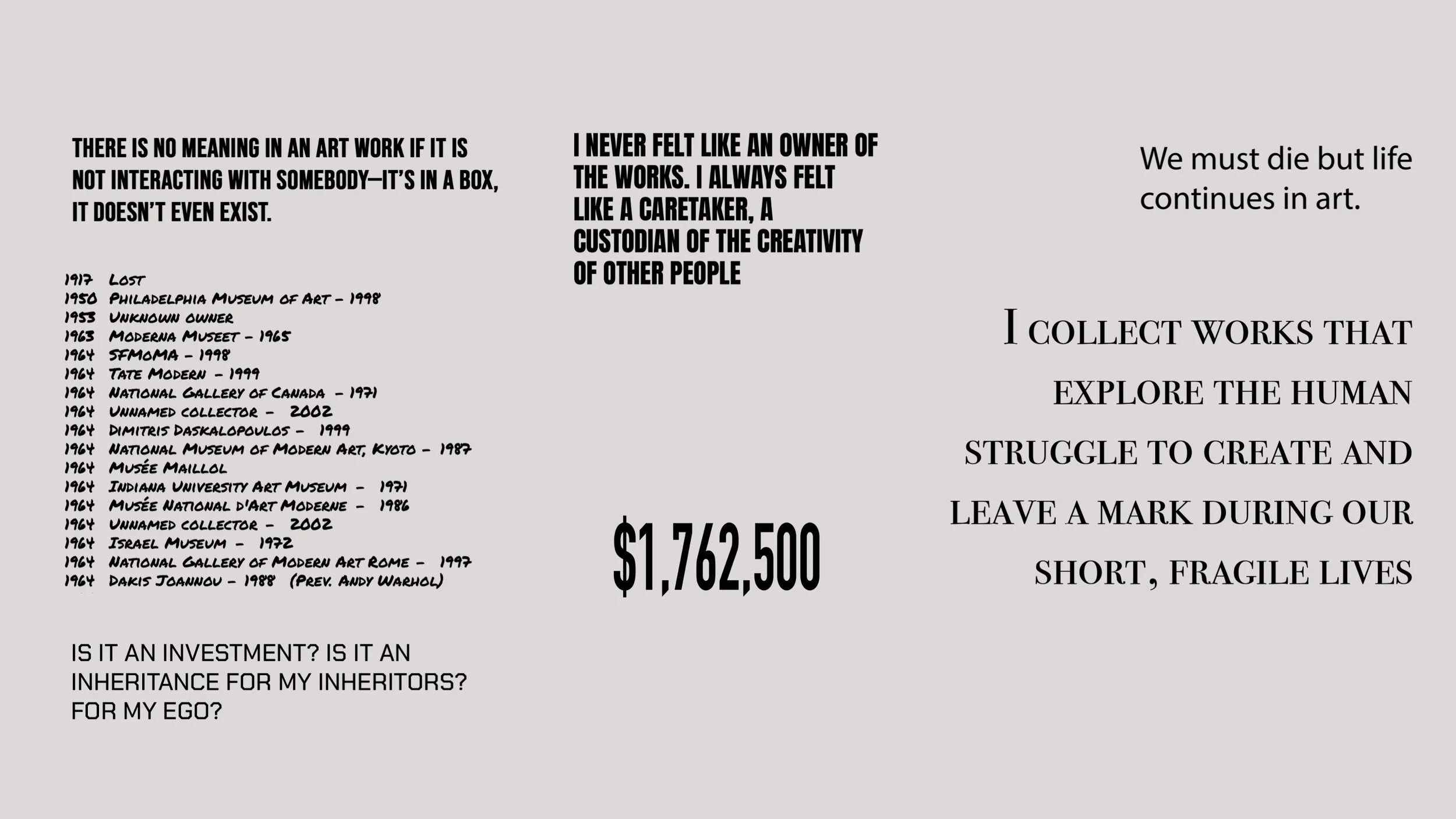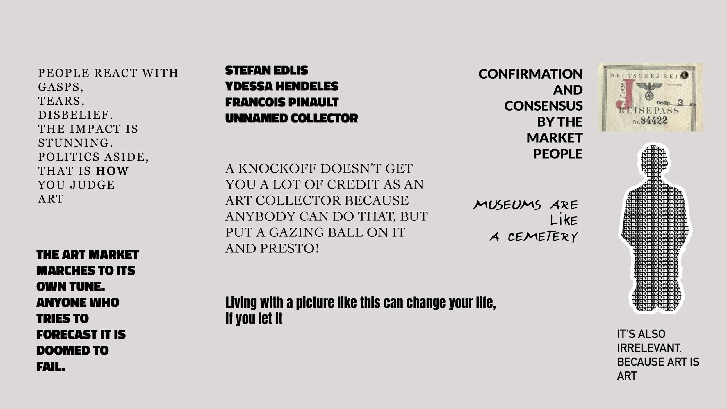 Collectors have an issue with storage but do they only collect to be able to say they own this and that? Don’t they want to be able to look at their possessions? Or do they have replicas in their homes and they don’t mind having the original safeguarded at a freeport so that they can tax evade?